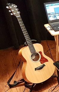 Plastic piece of headstock slightly damaged, Taylor GS Mini Pickup installed |